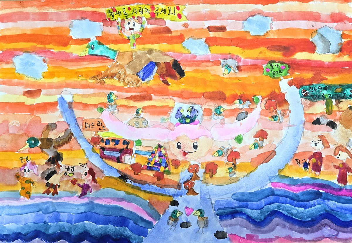 천수만_철새그림_그리기대회에서_대상을_받은_작품_철새와_우리가_천수만에서_함께_살아가는_세상을_꿈꾸며 (사진제공=서산시)