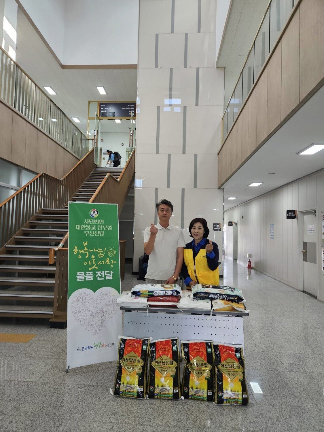 이번 후원은 지역사회 내 소외된 이웃들에게 따뜻한 온정을 나누고자 하는 천무종의 뜻으로 마련된 것으로 전달된 쌀은 온양6동 행복키움추진단을 통해 취약계층 가구에 전달될 예정이다.