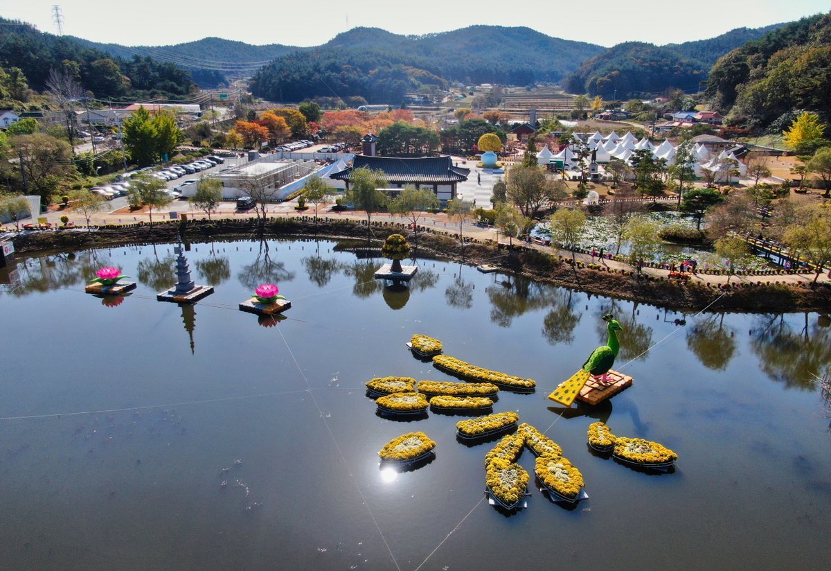 올해 축제에서는 ‘꽃과 바다, 그리고 사람’을 주제로 형형색색의 국화 작품 전시와 함께 연못, 연꽃정원, 국화 조형물 등 다양한 볼거리가 마련됐다.