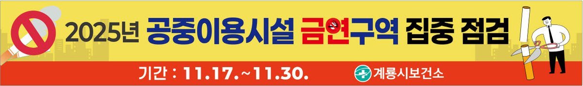 [Ytv영상스토리] 계룡시는 시민의 건강 보호와 쾌적한 공공환경 조성을 위해 2025년 금연구역 합동점검을 11월 17일부터 11월 30일까지 2주간 실시한다고 밝혔다.