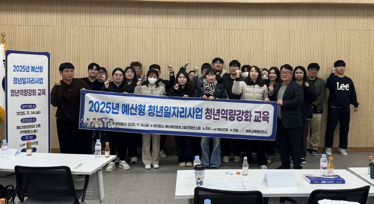 [Ytv영상스토리] 예산군은 지난 14일 예산청년온담 컨퍼런스홀에서 2025년 예산형 청년일자리사업 참여 근로자를 대상으로 직무역량강화 교육을 실시했다고 밝혔다.