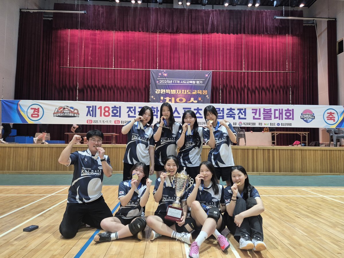 [Ytv영상스토리] 설화고등학교 킨볼 여자팀이 11 월 15 일 ~ 17 일 까지 강원도 횡성 국민체육관에서 열린 2025 년 제 18 회 전국 학교스포츠클럽 축전 여자고등부 킨볼 대회에서 전국 1 위를 차지했다.