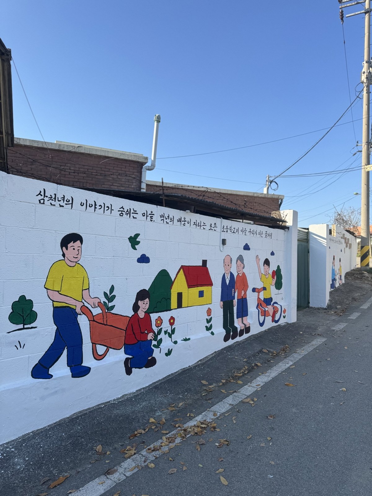 참여자들은 11월 14일부터 16일까지, 총 3일간 벽면 세척부터 스케치, 채색, 코팅까지 모든 과정을 함께하며 응평리 마을 입구의 낡고 단조로운 외벽을 생동감 있는 공간으로 재탄생시켰다.