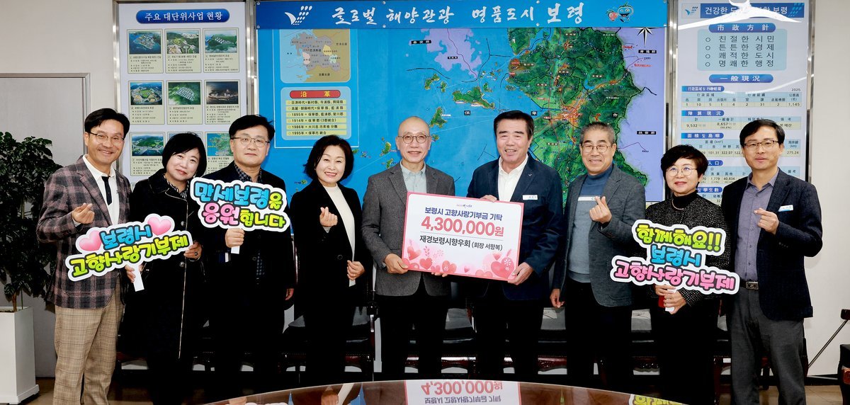 재경 보령시 향우회는 서울에 거주하는 보령 출신 향우들의 모임으로 고향과의 지속적인 교류를 통해 지역발전을 지원하고 있으며 이번 기부를 통해 고향에 대한 변함없는 애정을 표현했다.