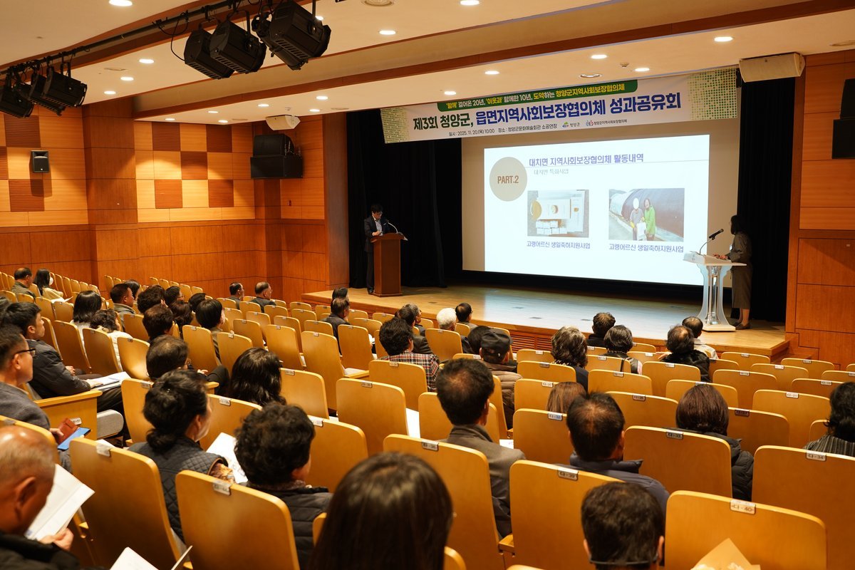 [Ytv영상스토리] 청양군지역사회보장협의체는 지난 20일 청양군 문화예술회관에서 ‘제3회 2025년 청양군 읍면 지역사회보장협의체 성과공유회’를 성황리에 개최했다고 밝혔다.