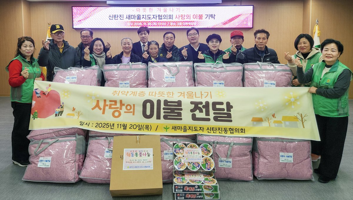 육심진 신탄진동 새마을지도자협의회 회장은 “저희가 준비한 물품들이 추운 겨울을 보내는 이웃들에게 조금이나마 도움 되길 바란다”며 “앞으로도 지역 주민과 함께하는 든든한 동반자로서 나눔 활동을 지속하겠다”고 말했다.