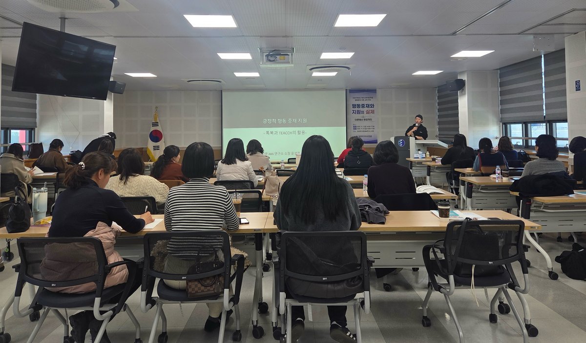 특히 이번 연수에서는 행동분석과 긍정적 행동지원의 원리를 바탕으로, 학생의 기능별 문제행동에 대한 이해부터 톡북 활용, 의사소통 교수, 공간 구조화, 강화 체계 적용 등 교사들이 실제 수업과 학급 운영에 적용할 수 있는 다양한 현장 중심 사례가 제시되어 참가 교원들의 큰 호응을 얻었다.