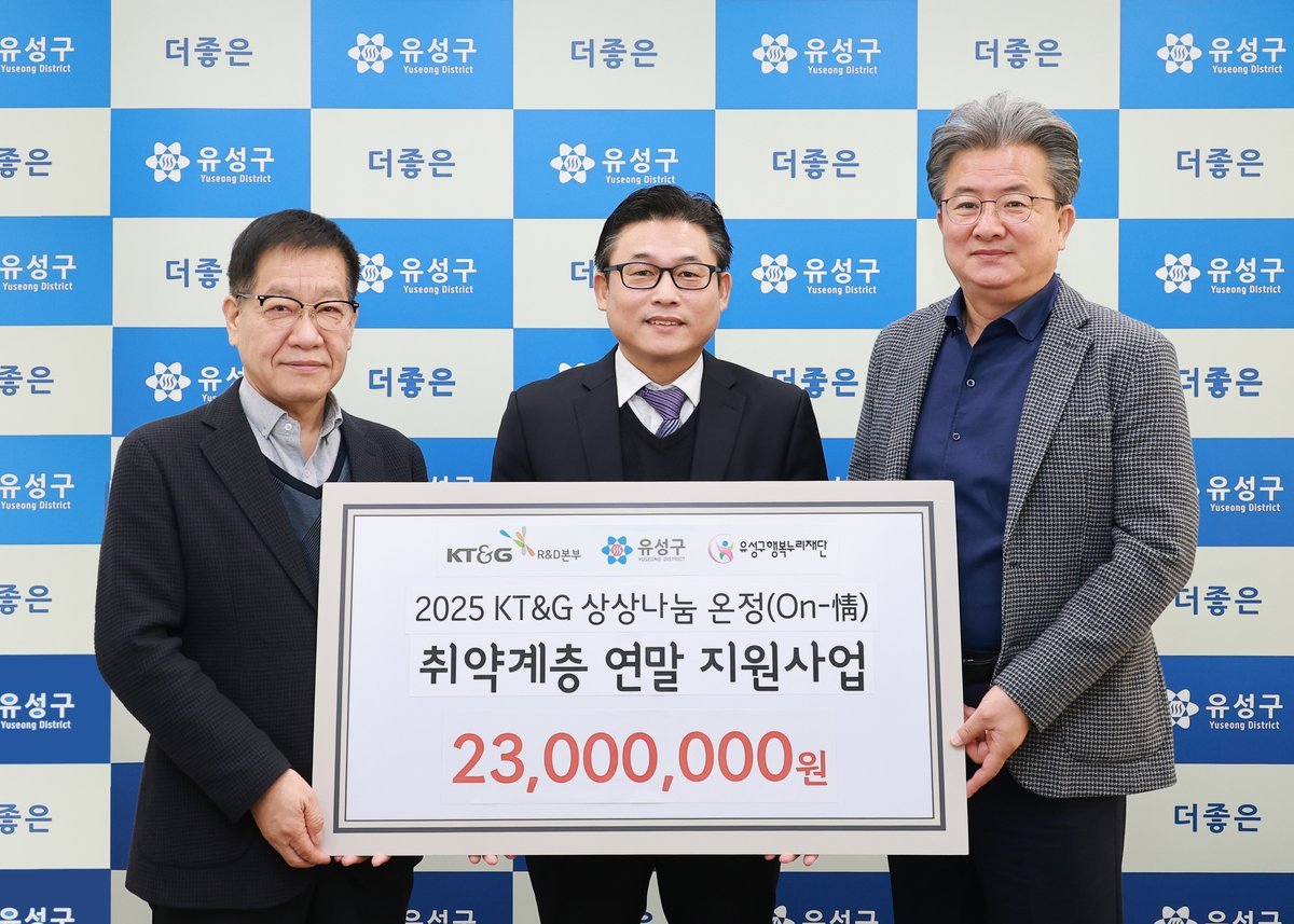 [Ytv영상스토리] 대전 유성구는 26일 KT&G R&D본부가 유성구행복누리재단에 지역 내 취약계층 지원을 위한 후원금 2,300만 원을 기탁했다고 밝혔다.