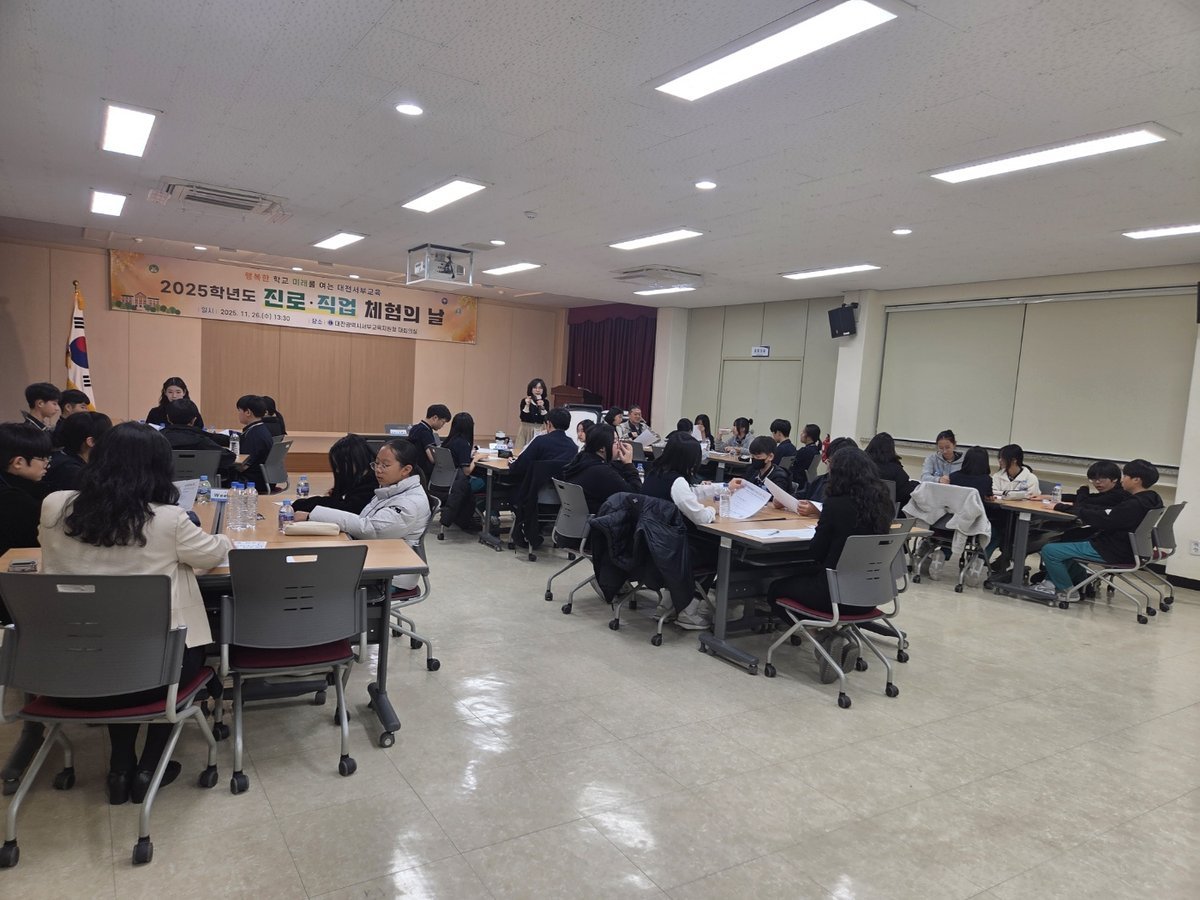 [Ytv영상스토리] 대전서부교육지원청은 살아 있는 진로 교육의 장으로 변모한다. 11월 26일 오후 1시부터 4시까지 대전버드내중학교 1학년 학생 32명을 초청해 ‘2025년 하반기 진로·직업 체험의 날’행사를 개최했다.