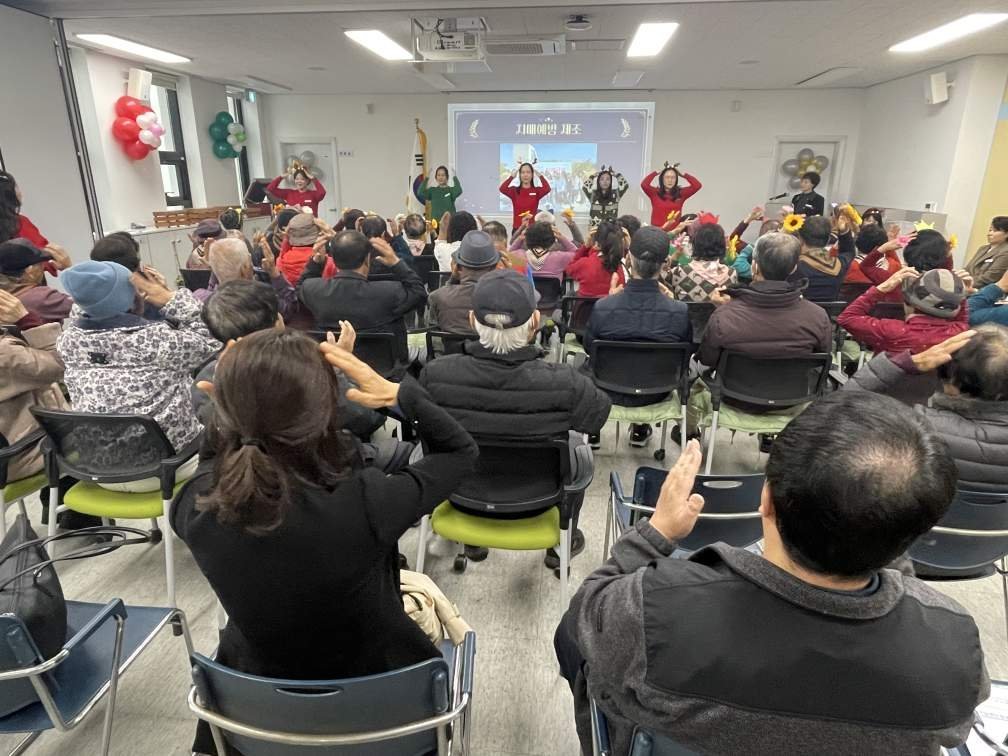 행사는 센터 직원들의 치매 예방 체조 공연, 1년 동안 함께한 보호자의 소감 발표, 프로그램 참여 어르신들의 건강 체조, 다듬이 난타 공연으로 이뤄졌다.