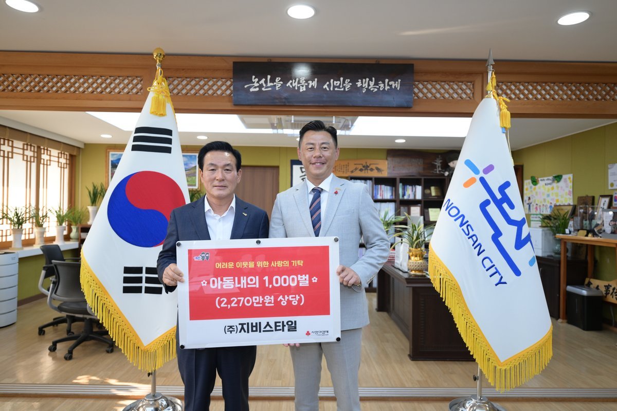 논산시는 26일 국내 대표 유·아동 내의 전문 기업 ㈜지비스타일이 내의 등 2270만 원 상당의 아동 의류 1000벌을 기탁했다고 밝혔다.