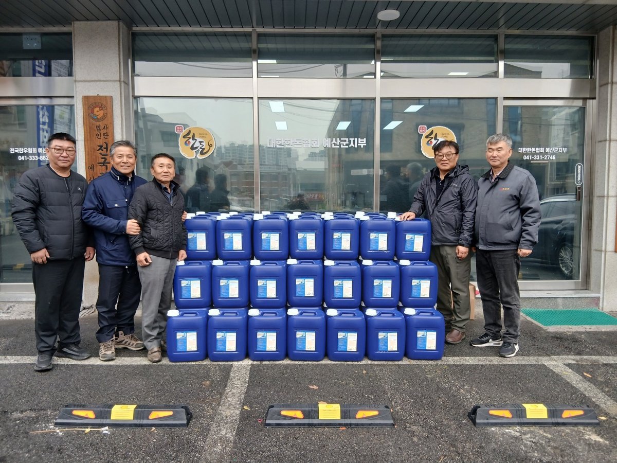 예산군, ㈜한동으로부터 아프리카돼지열병 차단 소독약품 기탁 받아 (예산군 제공)