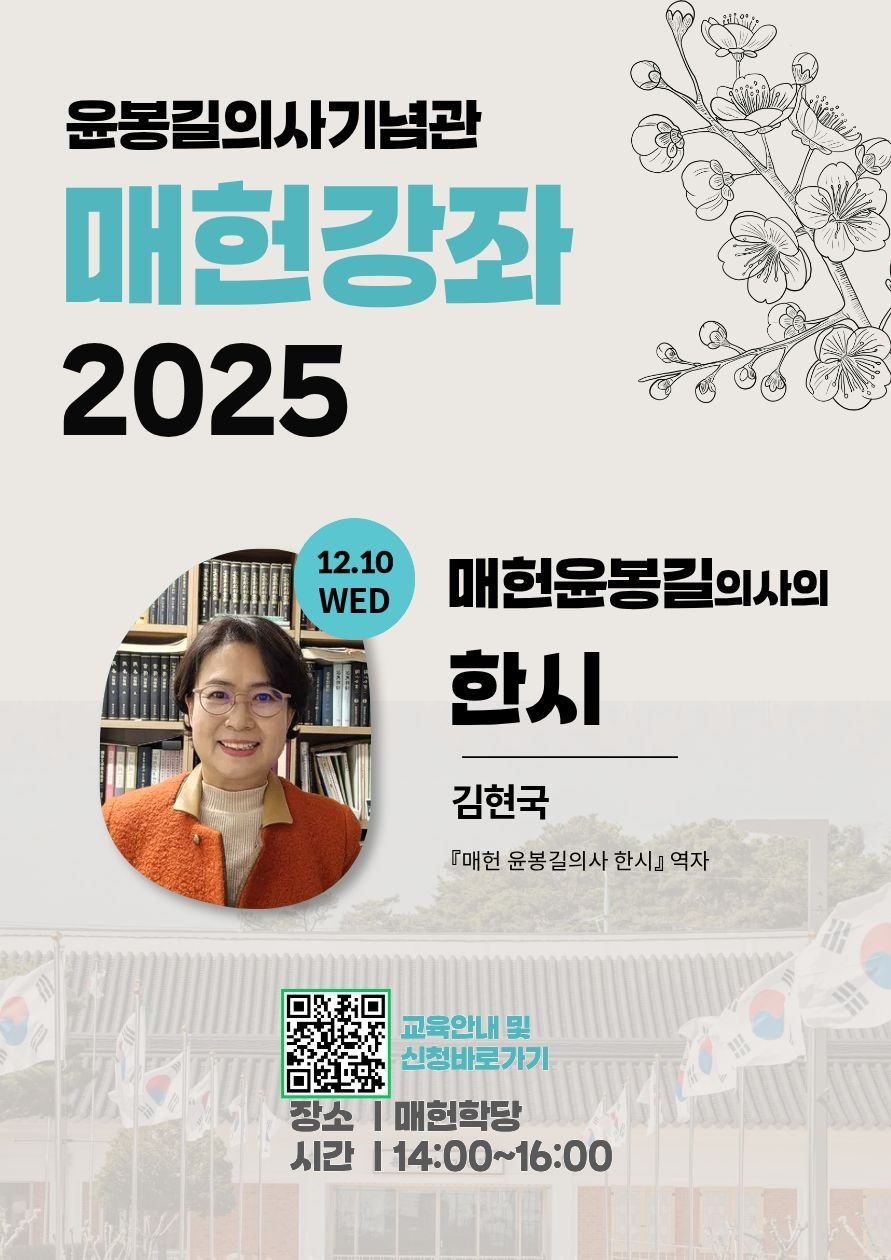 기념관은 제1회 강좌에 이어 제2회 매헌강좌 참가자를 모집 중으로 제2회 강좌는 12월 10일 오후 2시 매헌학당에서 윤봉길 의사의 한시를 주제로 열린다.