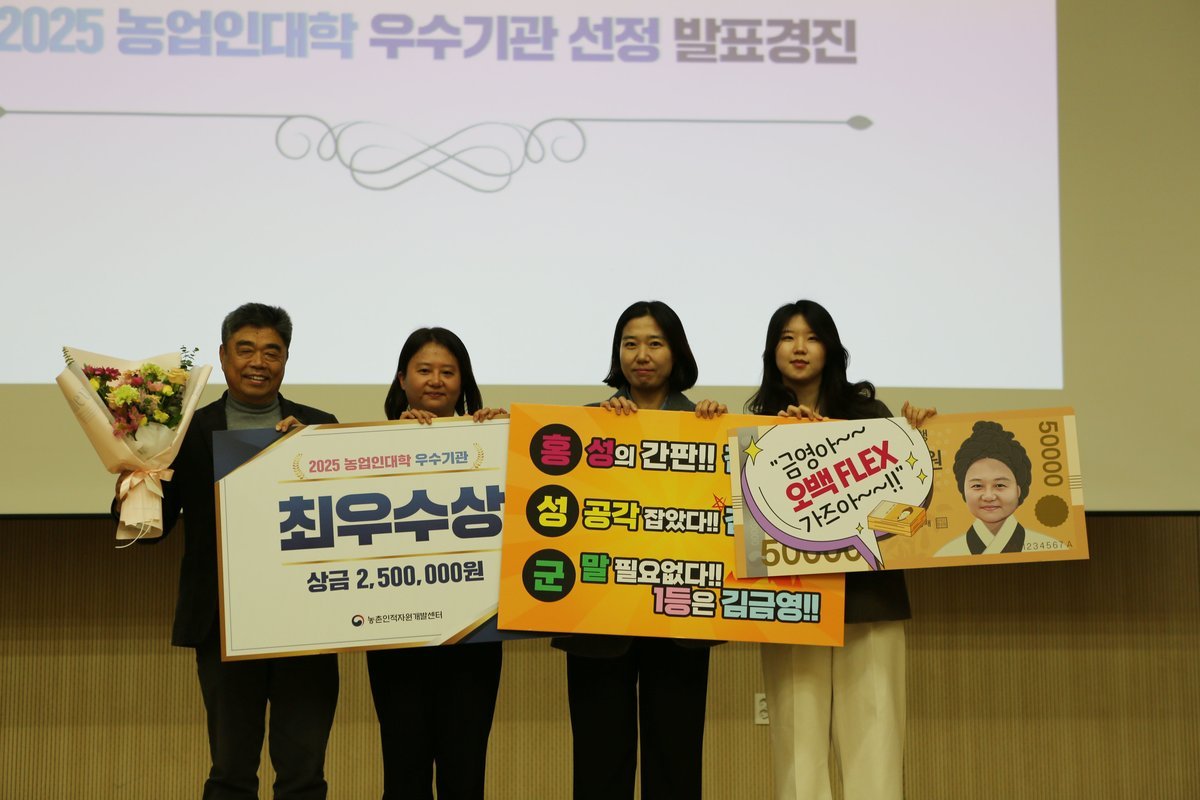 군에 따르면 지난 2023년 농업인대학 우수상과 스마트강소농 교육 최우수상 수상, 2024년 농업인교육훈련 우수기관, 스마트강소농 교육 대상을 수상한 데에 이어 2025년 농업인대학 운영 경진대회에서 최우수상을 수상한 것이다.