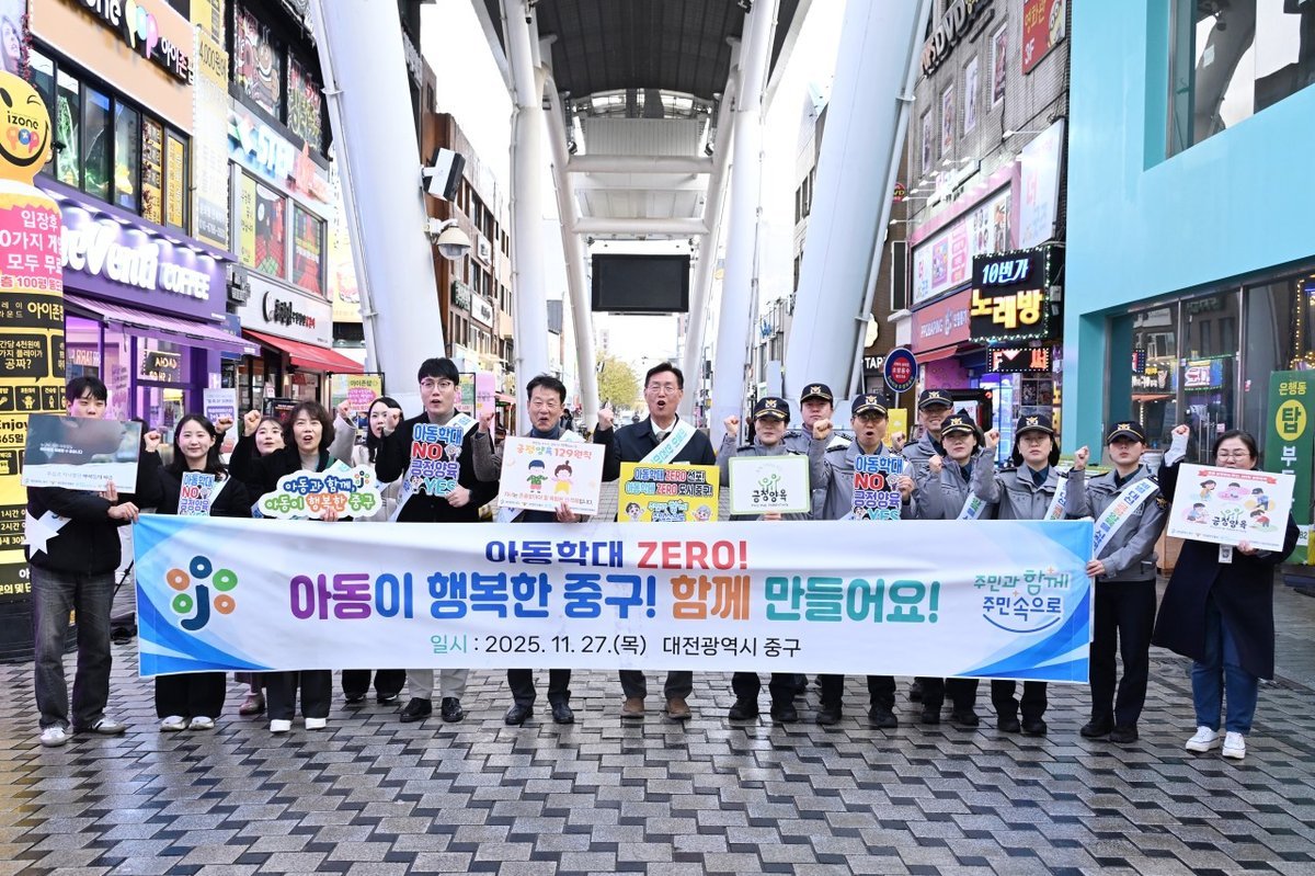 [Ytv영상스토리] 대전 중구 는 지난 27일 아동학대 예방의 날을 맞아 으능정이 문화의 거리에서 민·관이 함께하는 아동학대예방 합동 캠페인을 전개했다고 밝혔다.