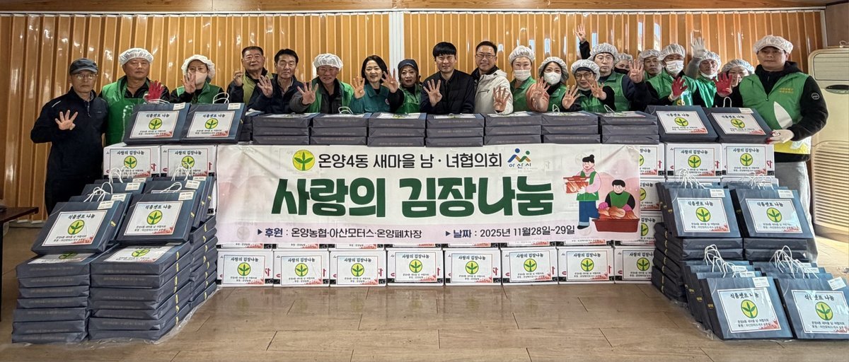 이유영 온양4동장은 “정성으로 마련된 김장김치와 후원물품이 주민들에게 큰 힘이 되길 바라며, 행정에서도 민간과 협력하여 지속 가능한 나눔 활동을 적극 지원하겠다”고 밝혔다.