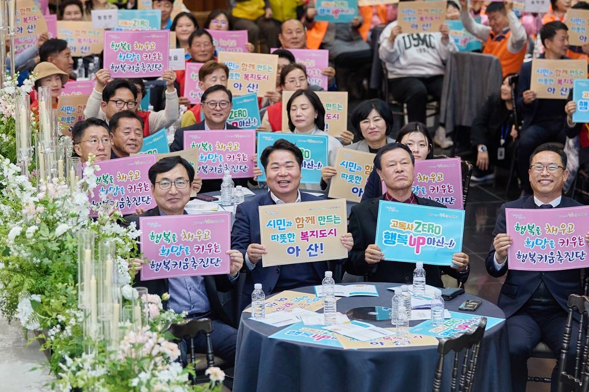 행사는 아산시립합창단의 식전공연을 시작으로 행복키움사업 유공자 표창, 17개 읍면동 행복키움추진단 활동 영상 소개에 이어 아산만의 다양한 복지사업을 알리는 손피켓 퍼포먼스로 한 해의 성과와 앞으로의 다짐을 함께 표현했다.