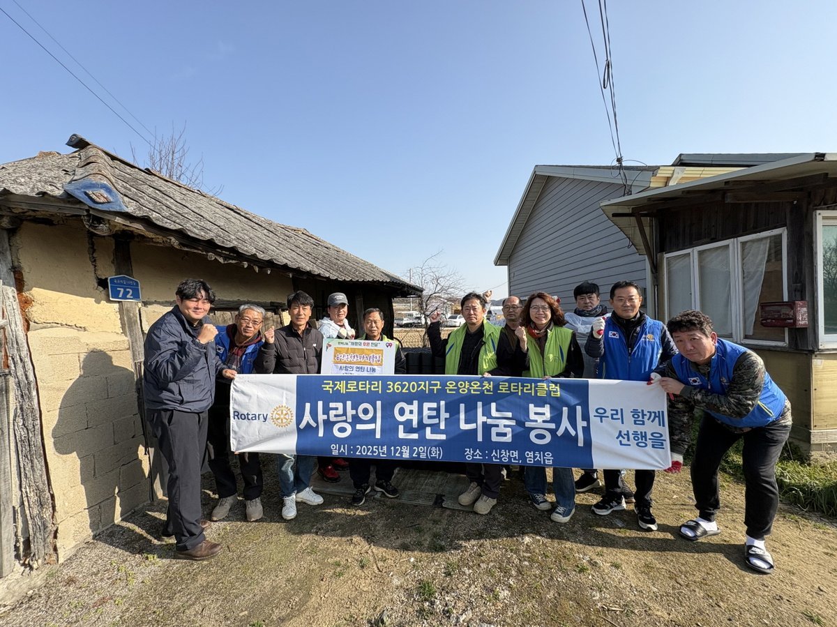 강명구 공동단장은 “연탄 500장은 한 가정의 겨울을 든든하게 지켜주는 큰 도움이 된다”며 “온양온천로타리클럽의 지속적인 관심과 후원에 깊이 감사드리며, 필요한 가정에 신속히 전달하겠다”고 말했다.