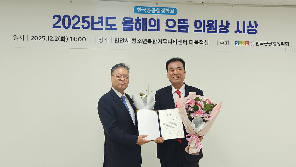 [Ytv영상스토리] 방한일 충남도의원이 2일 한국공공행정학회가 선정한 ‘2025 올해의 으뜸 의원상’을 수상했다.