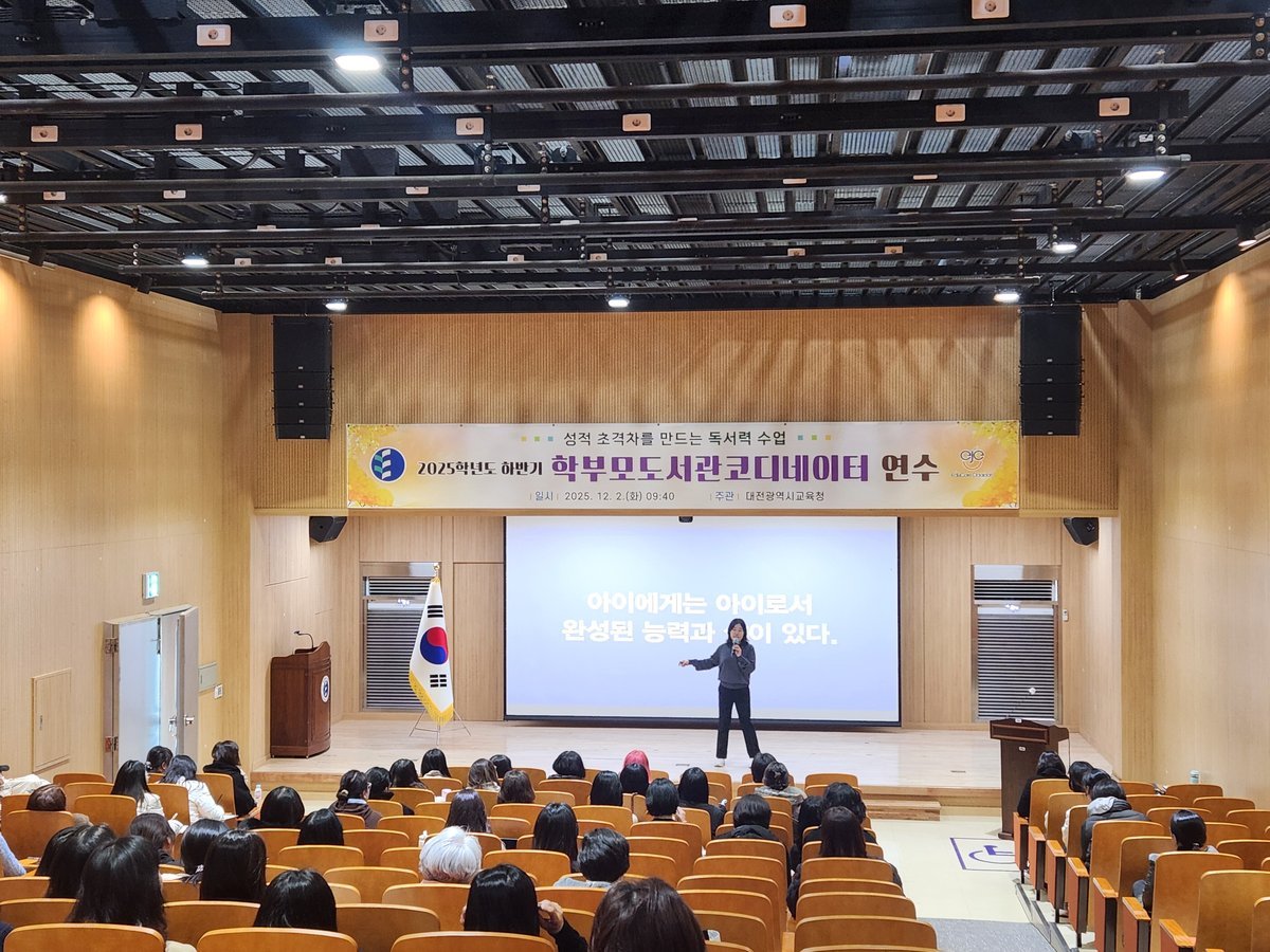 이번 연수는 독서교육전문가 김수미 작가가 초청되어 ‘성적 초격차를 만드는 독서력 수업’을 주제로 대전교육정보원에서 강연을 진행하였으며, 발달 단계에 맞춘 독서 습관 형성 방법과 가정에서 적용 가능한 독서 지도법을 제시해 참석자들의 큰 호응을 얻었다.