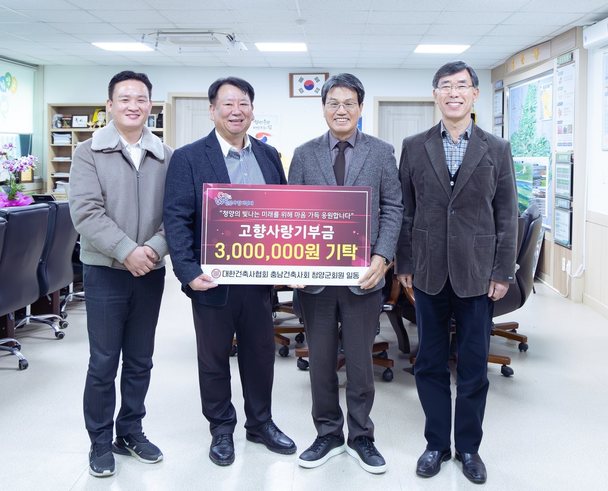2012년 설립된 청양지역건축사회는 박병선 회장을 중심으로 10명의 회원이 활동하고 있으며, 이번 기부는 지역을 향한 깊은 애정과 책임감을 다시 한 번 보여준 계기가 됐다.