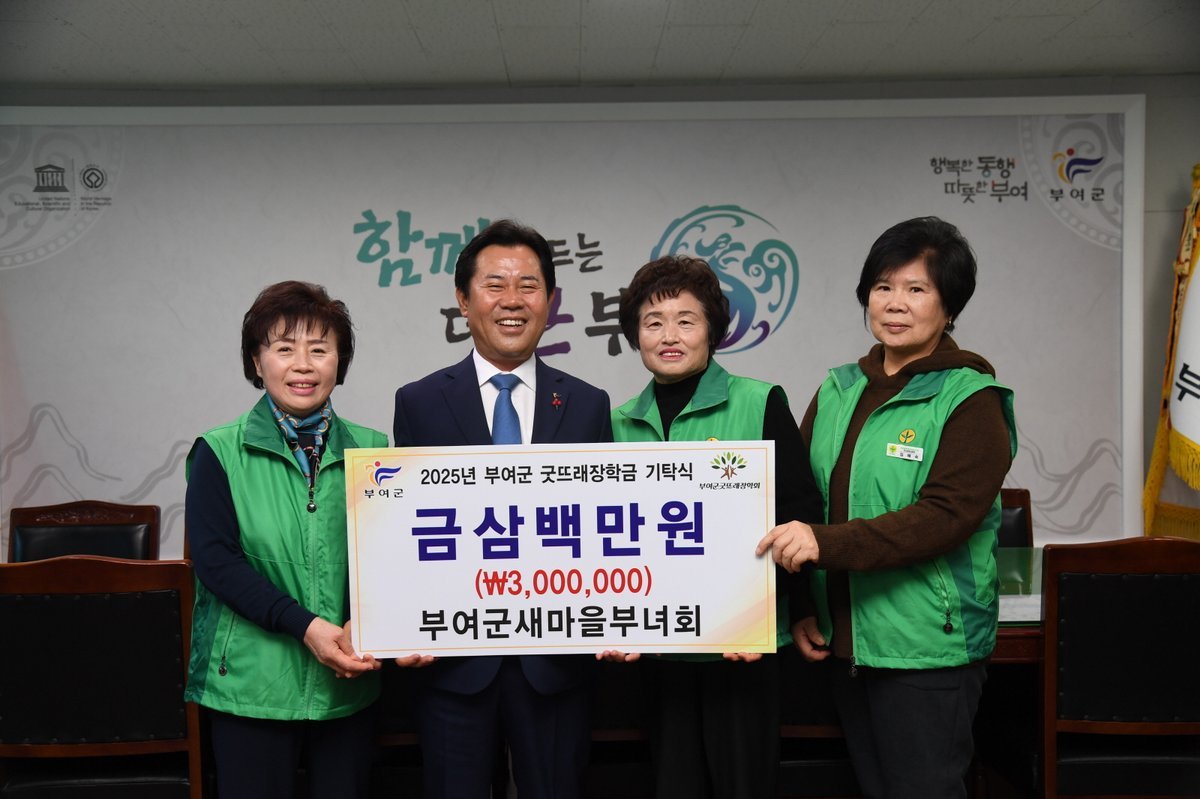 [Ytv영상스토리] 부여군새마을부녀회는 부여군청을 방문하여 인재 육성을 위한 장학금 3백만 원을 부여군굿뜨래장학회에 기탁 했다고 4일 밝혔다.