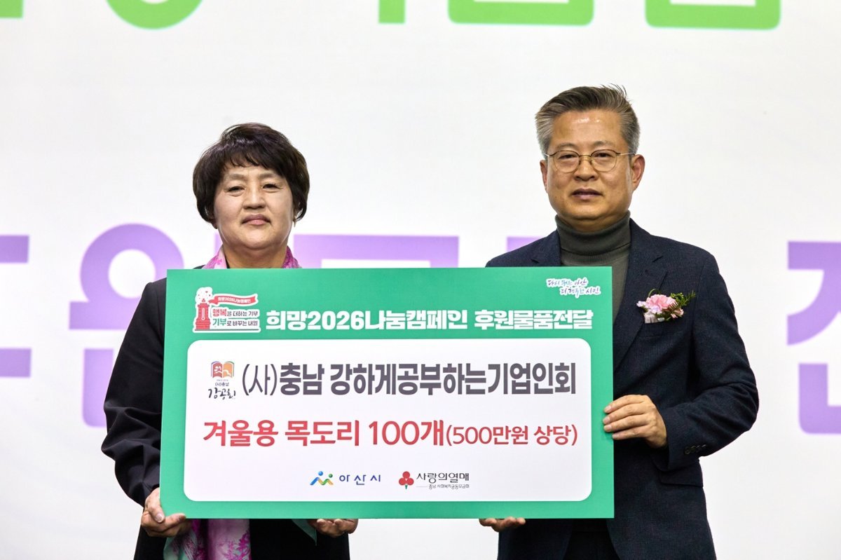 아산시, 충남 강공회 기업인대회서 목도리 100개 기부 받아 (아산시 제공)
