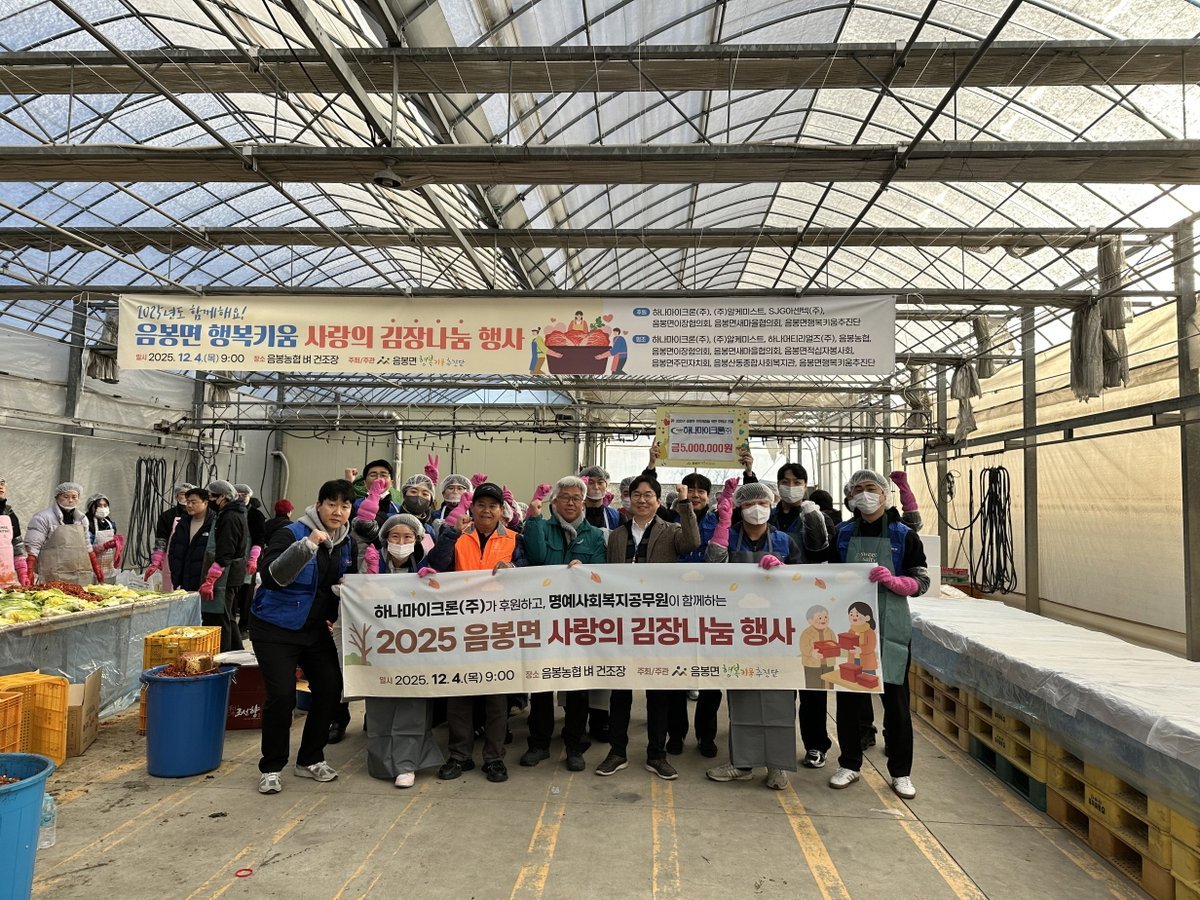 [Ytv영상스토리] 하나마이크론㈜은 4일 아산시 음봉면 행복키움추진단의 ‘2025년 함께해요 행복키움 사랑의 김장 나눔 행사’에 후원금 500만 원을 전달했다.