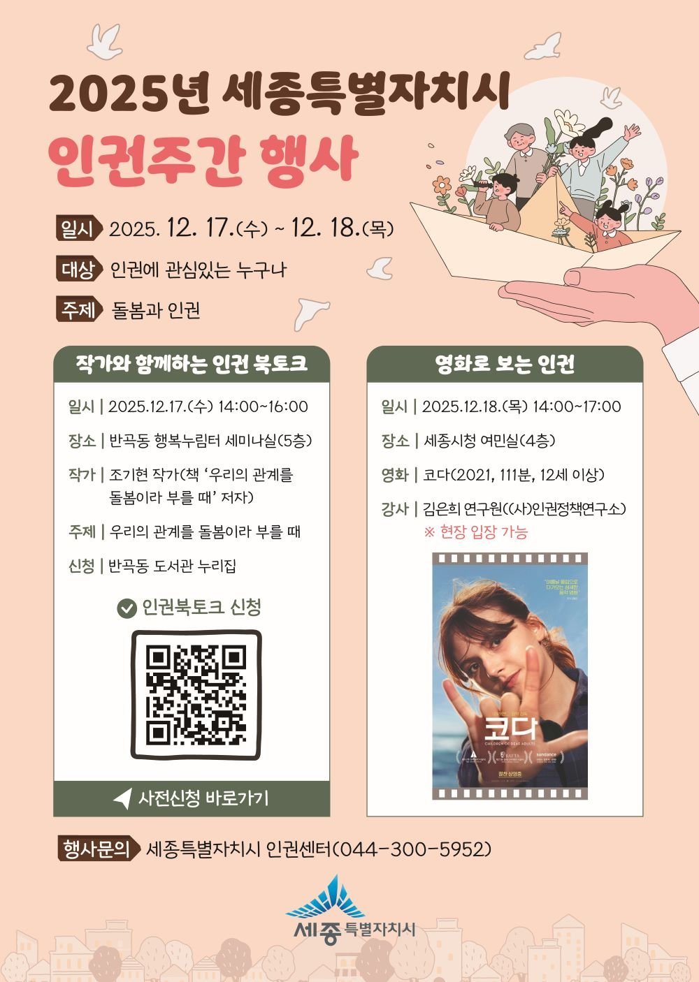 올해 인권 주간의 주제는 ‘돌봄과 인권’으로, 돌봄의 의미를 개인의 몫이 아닌 공동체적 가치로 바라보며 시민이 일상 속 다양한 돌봄 관계를 새롭게 이해할 수 있도록 기획됐다.