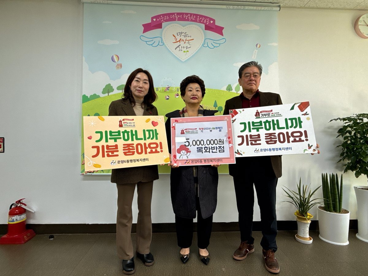 이순주 온양6동장은 “어려운 경제 여건 속에서도 지속적인 나눔을 실천해 주셔서 깊이 감사드린다”며 “기탁 성금은 도움이 필요한 주민들에게 투명하게 전달하겠다”고 밝혔다.