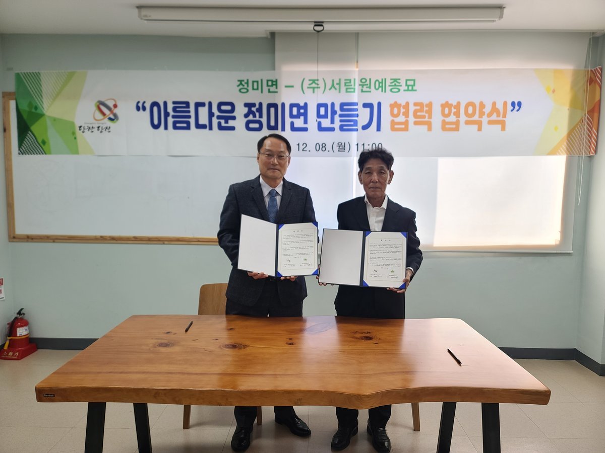 박명수 정미면장은 “서림원예종묘와의 협력은 정미면의 환경 수준을 한 단계 더 높이는 계기가 될 것”이라며 “전문성을 갖춘 민간기관과 손잡고 지역 곳곳에 변화와 생기를 불어넣겠다”고 말했다.