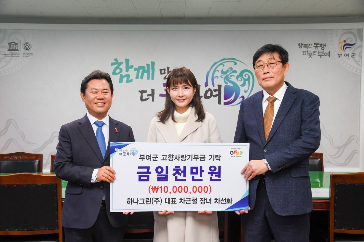 차씨는 “고향에서 자라며 받은 정과 응원을 늘 마음에 품고 있으며, 부여군의 의미 있는 제도에 힘을 실어주고 싶었다.”라고 기탁 소감을 전했다.