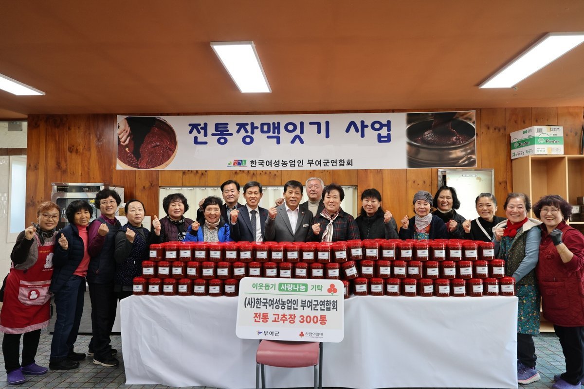 이날 행사에서는 한국여성농업인 부여군연합회 회원 40명이 참가하여 직접 장을 담그고 300통의 고추장을 부여군 취약계층에 기부하였다.