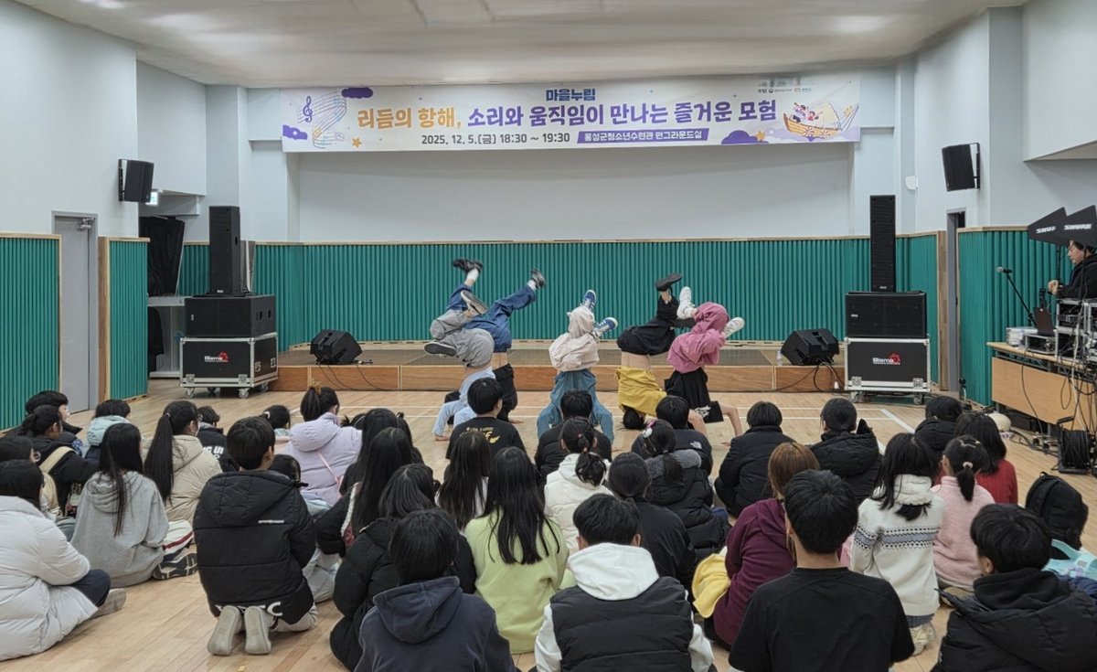 마지막으로 12월 5일 홍성군청소년수련관 펀그라운드실에서 진행된 ‘리듬의 항해, 소리와 움직임이 만나는 즐거운 모험’ 공연은 홍성군청소년수련관 어린이 이용자를 대상으로 마련되었으며, 클래식 합주·스트릿댄스·마술·저글링·재즈 등 흥미로운 요소가 결합된 무대로 어린이들이 문화예술을 친근하게 접할 수 있도록 했다.