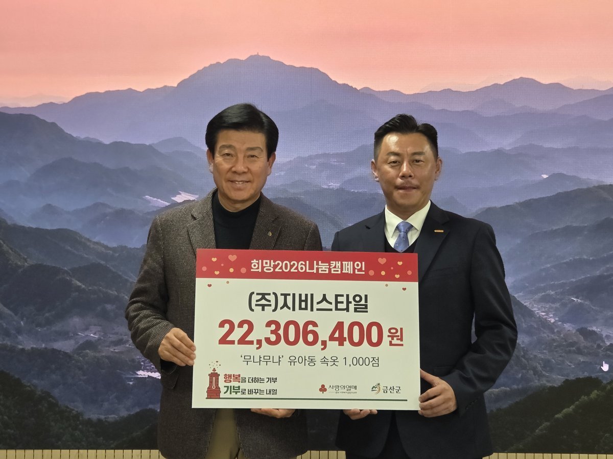 [Ytv영상스토리] 유아동 의류 전문 브랜드 ㈜지비스타일은 지난 11일 금산군청을 방문해 약 2230만 원 상당 유아동 내의 1000점을 기탁하며 지역 아동을 위한 따뜻한 나눔을 실천했다.