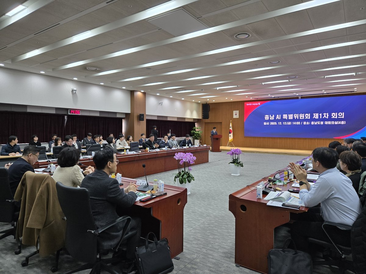 도는 12일 도청 대회의실에서 도내 전역의 체계적인 인공지능 전환 추진을 위한 ‘충남AI특별위원회 제1차 회의’를 개최했다.