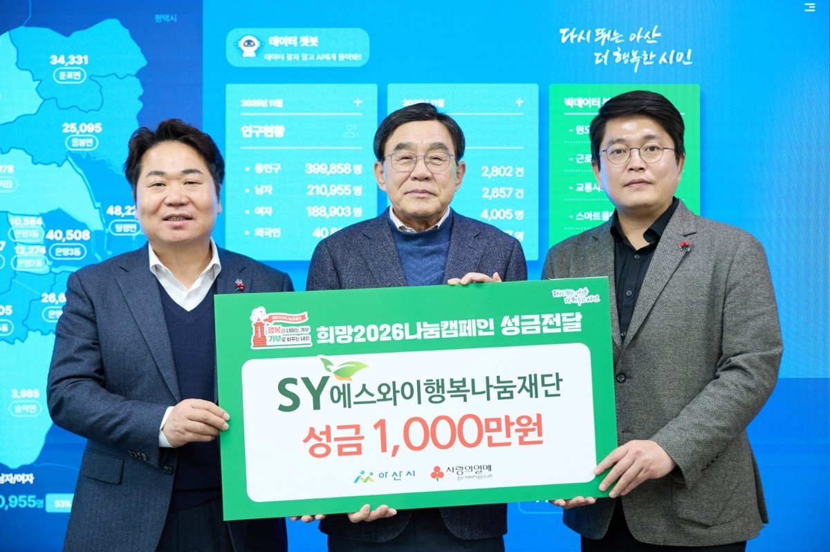 [Ytv영상스토리] 에스와이행복나눔재단이 15일 아산시에 방문해 ‘희망2026나눔캠페인’성금 1000만 원을 기탁했다.