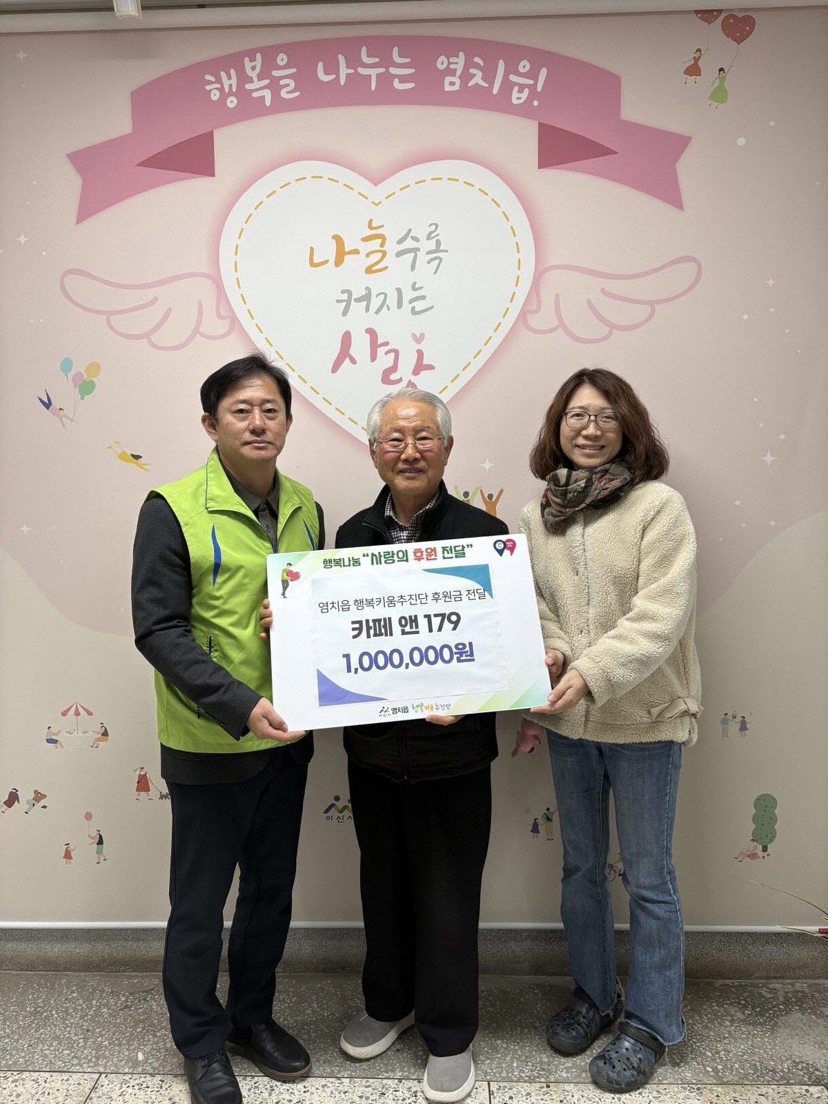 카페앤179, 아산시 염치읍 행복키움추진단에 후원금 100만 원 전달 (아산시 제공)