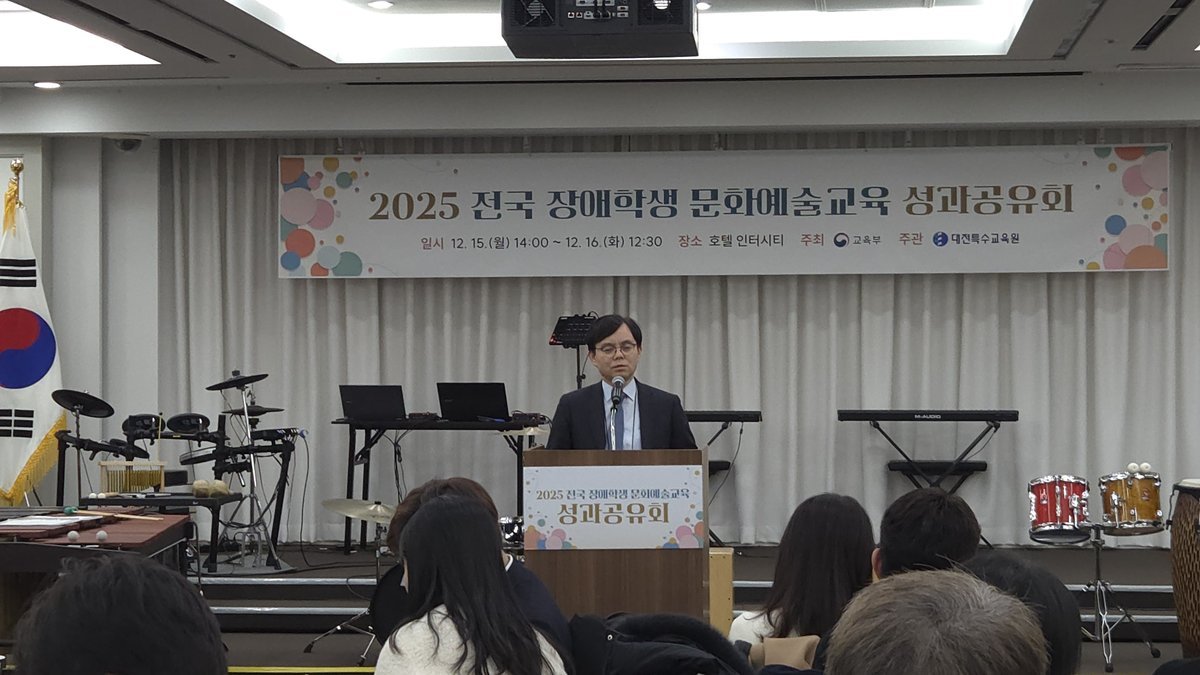 [Ytv영상스토리] 대전특수교육원은 12월 15일부터 16일까지 1박 2일 동안 호텔인터시티에서 전국 시도교육청 문화예술교육 담당 특수교사와 관계자 72명을 대상으로‘2025 전국 장애학생 문화예술교육 성과공유회’를 개최했다.