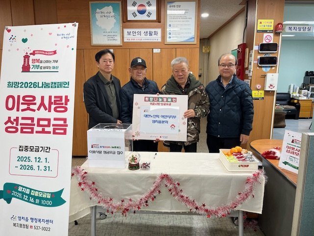 한편, ‘희망2026나눔캠페인’은 ‘행복을 더하는 기부, 나눔으로 행복한 아산’을 슬로건으로 내년 1월 31일까지 진행되며, 염치읍 행정복지센터를 통해 성금 기탁 및 참여가 가능하다.