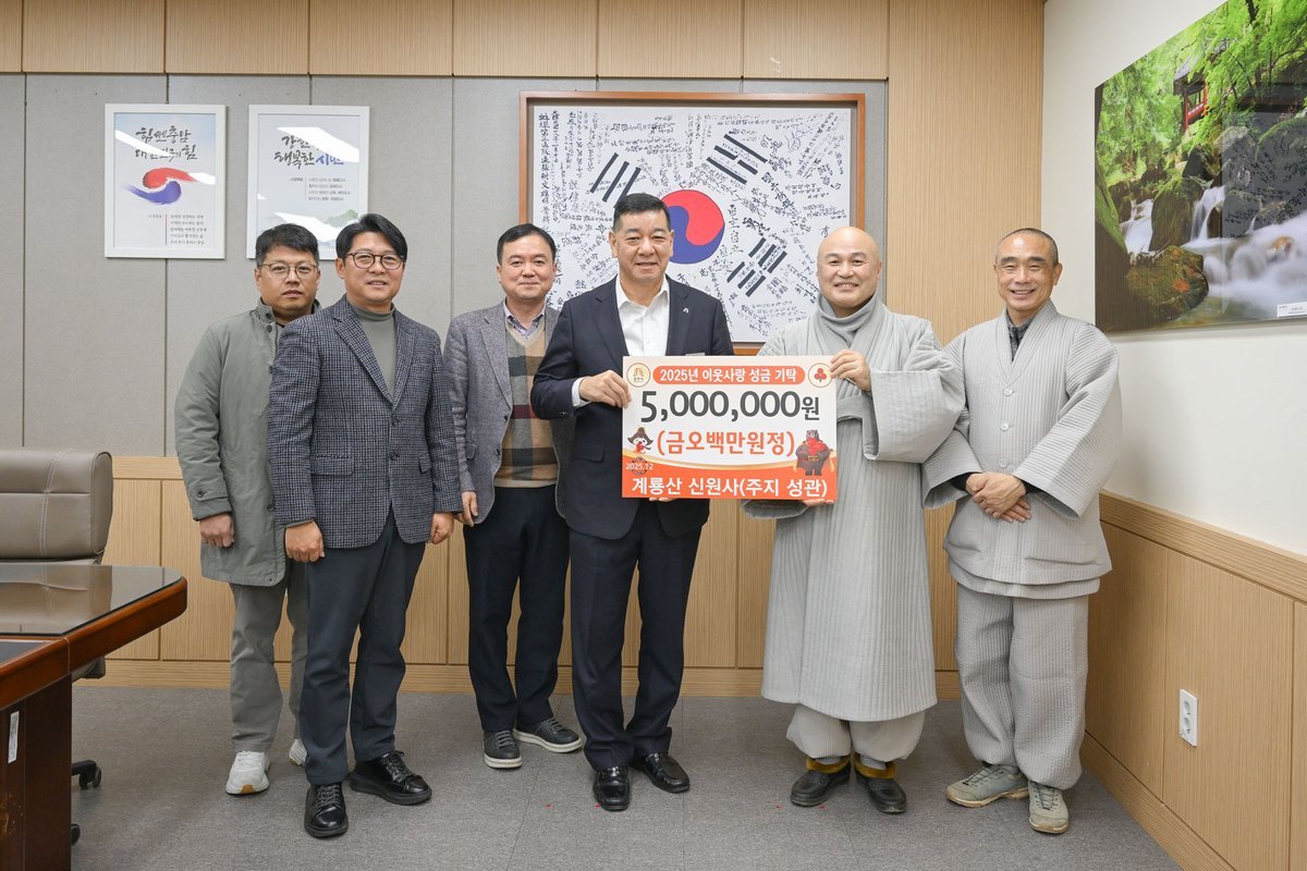[Ytv영상스토리] 공주시는 대한불교조계종 신원사가 지난 16일 시청 상황실에서 이웃돕기 성금 500만 원을 전달했다고 밝혔다.