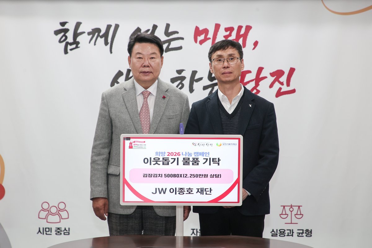 오성환 당진시장은 “매년 지역사회를 위한 나눔을 실천해 주시는 JW 이종호 재단과 관계자 여러분께 깊이 감사드린다”며 “정성껏 준비한 김장김치로 어려운 이웃들 겨울을 따뜻하게 보낼 것”이라고 화답했다.