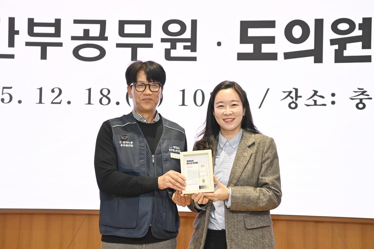 ‘베스트 공무원·도의원’상은 충청남도공무원노조가 조직문화 개선과 책임 있는 리더십 확립을 위해 제정한 상으로, 올해로 여섯 번째를 맞았다.