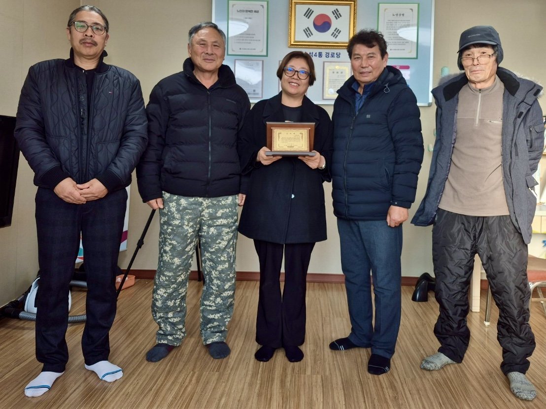 이번 공로패는 수석4통 주민들의 숙원이었던 경로당 상수도 공급 문제 해결에 이바지 공로를 인정받아 수여됐다.