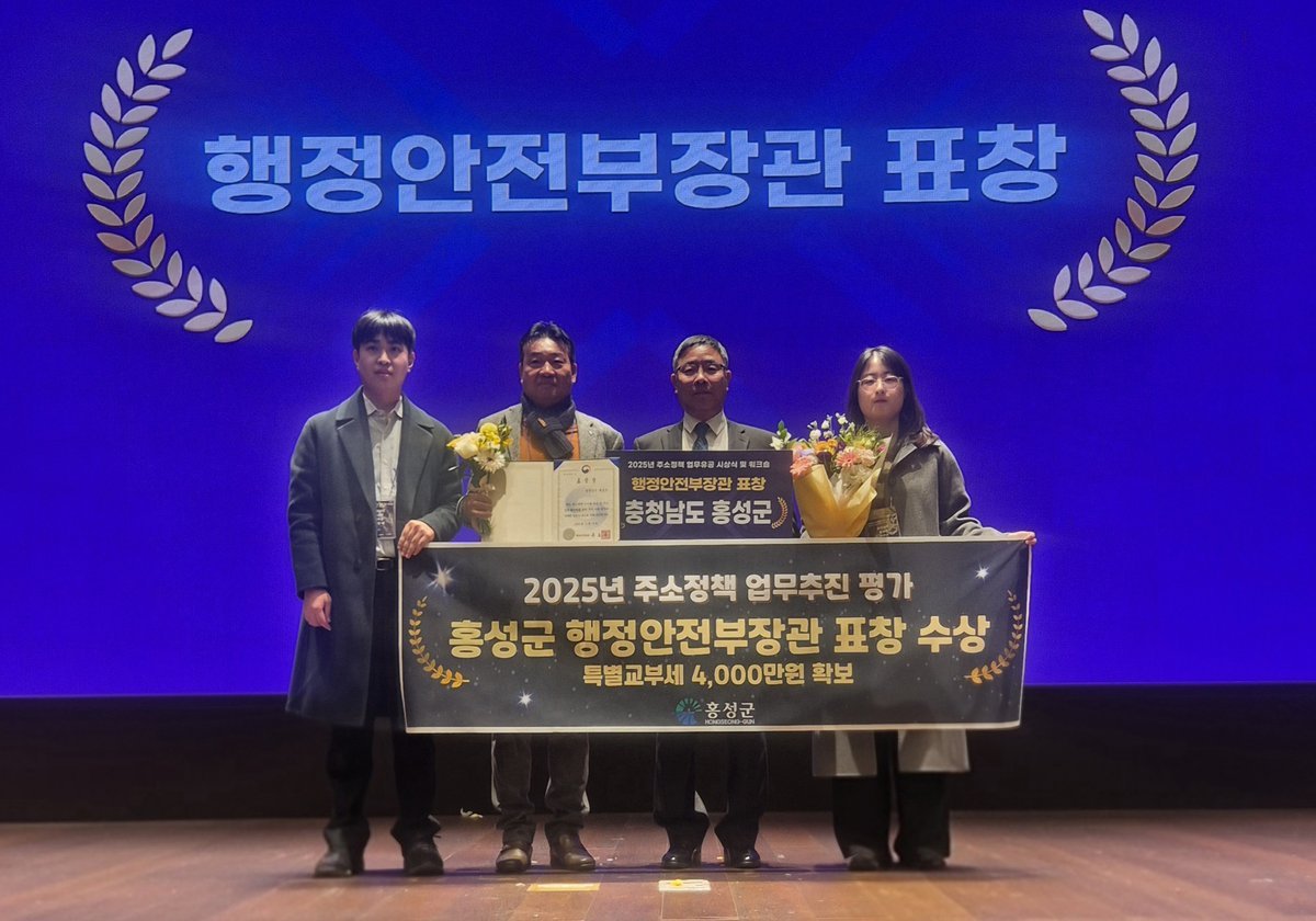 [Ytv영상스토리] 충청남도 홍성군이 지난 18일 행정안전부 주관 ‘2025년 주소정책 업무추진’평가에서 2010년, 2015년, 2018년에 이어 2025년에도 우수기관으로 선정되며 지역사회의 도로명주소 활용 및 관리 역량을 한 단계 끌어올린 성과를 인정받아 행정안전부 장관 표창과 특별교부세 4000만원을 받았다고 밝혔다.
