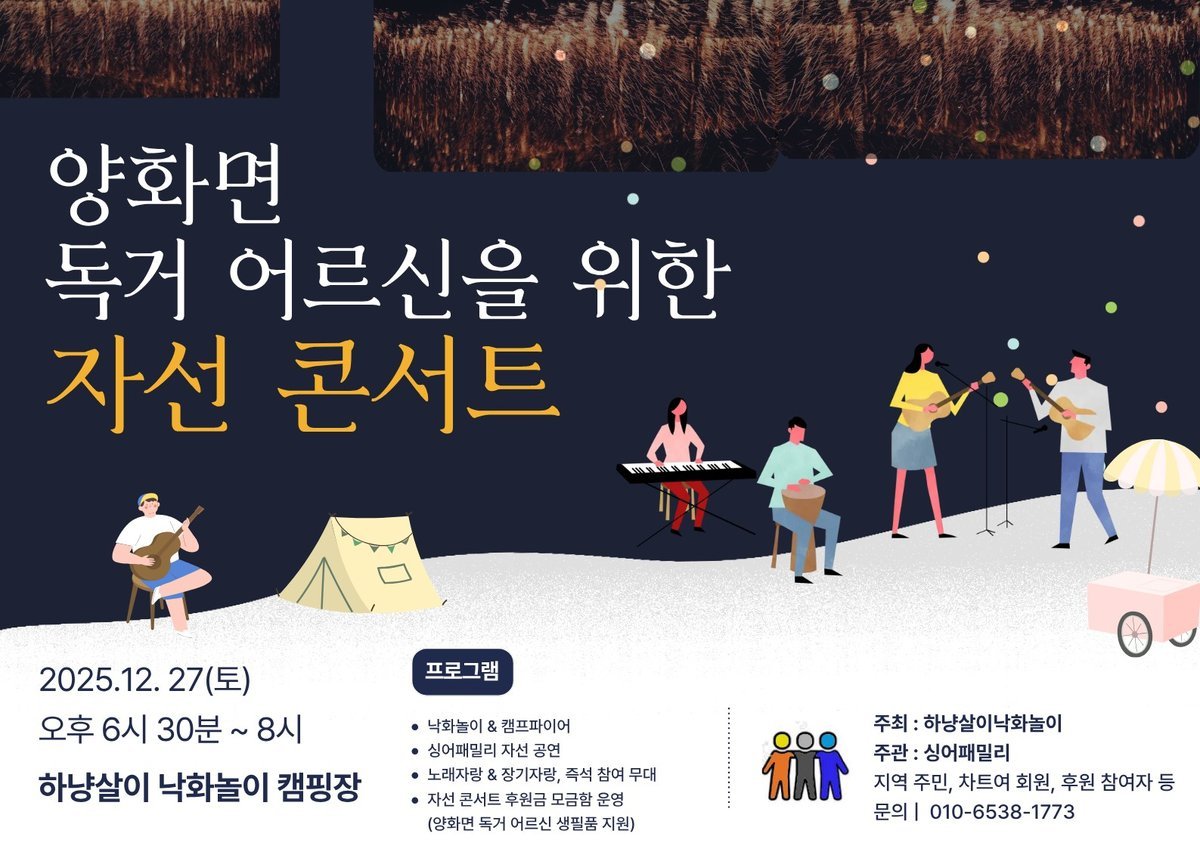 한편, 양화면에서는 새마을협의회의 김장 나눔 행사를 비롯해 다양한 나눔 활동이 연중 활발히 이루어지고 있으며, 이번 자선 콘서트는 민간 주도로 펼쳐지는 지역 돌봄 실천의 새로운 모델로 주목받고 있다.