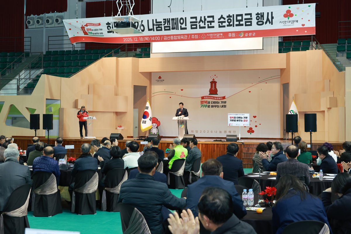 이번 행사는 연말연시를 맞아 군민들의 자발적인 나눔 참여를 통해 어려운 이웃에게 따뜻한 사랑과 희망을 전하고자 마련됐으며 김기윤 금산군의회 의장을 비롯해 군의원, 지역 기관·단체장, 충남사회복지공동모금회 관계자 등 군민 300여 명이 참석해 나눔의 의미를 함께 나눴다.