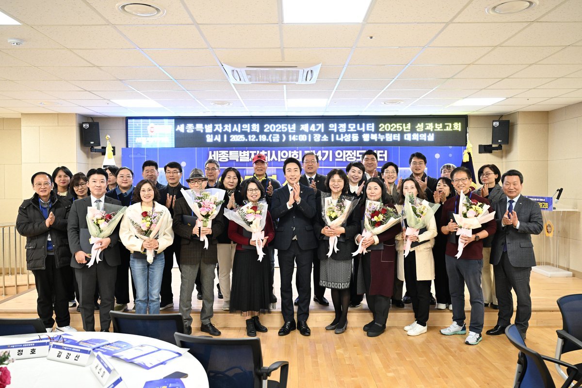 [Ytv영상스토리] 세종특별자치시의회는 19일, 나성동 복합커뮤니티센터에서 ‘2025년 제4기 의정모니터 성과보고회’를 개최하고, 한 해 동안의 의정모니터 활동 성과를 공유했다.