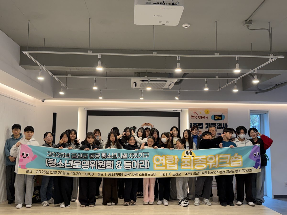 [Ytv영상스토리] 금산군은 지난 20일 금산읍 소재 청소년 카페 ‘와락’에서 2025년 청소년수련시설 지치기구·동아리 연합 최종 워크숍을 성료했다.