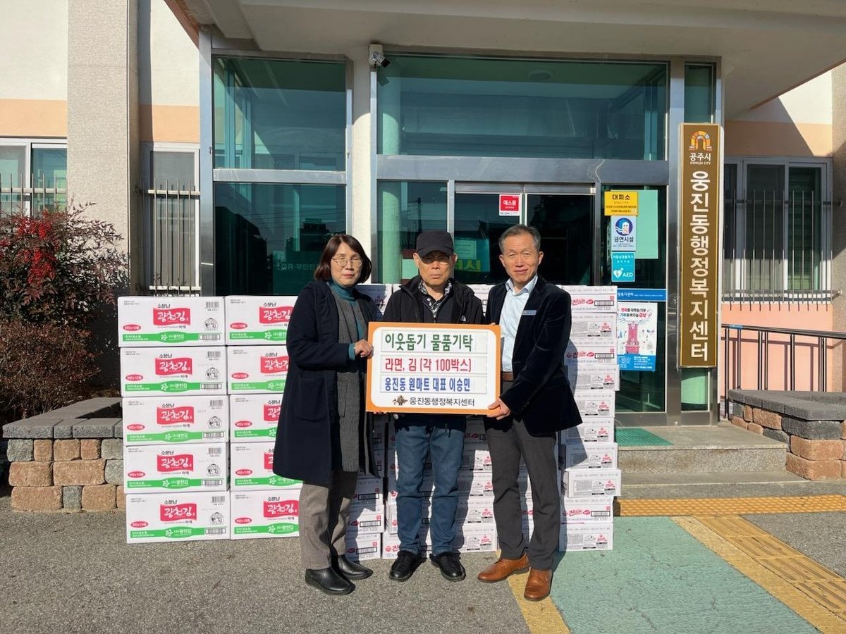 송의석 웅진동장은 “매년 변함없이 이웃사랑을 실천해 주시는 원마트에 깊이 감사드린다”며 “기탁된 물품은 도움이 필요한 저소득 가구에 소중히 전달하겠다”고 밝혔다.